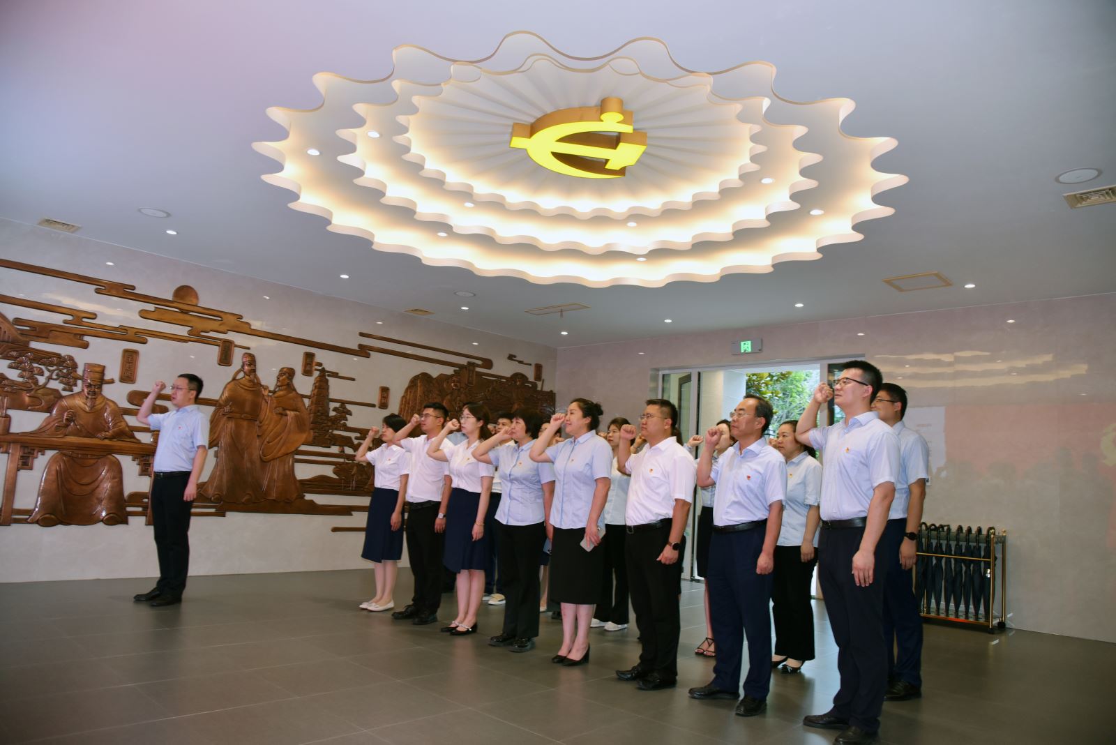 活動伊始,全體黨員在宣誓廳整齊列隊,舉起右拳,神情莊重地重溫入黨誓詞。?