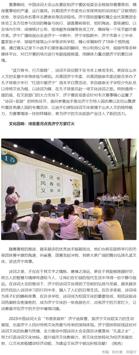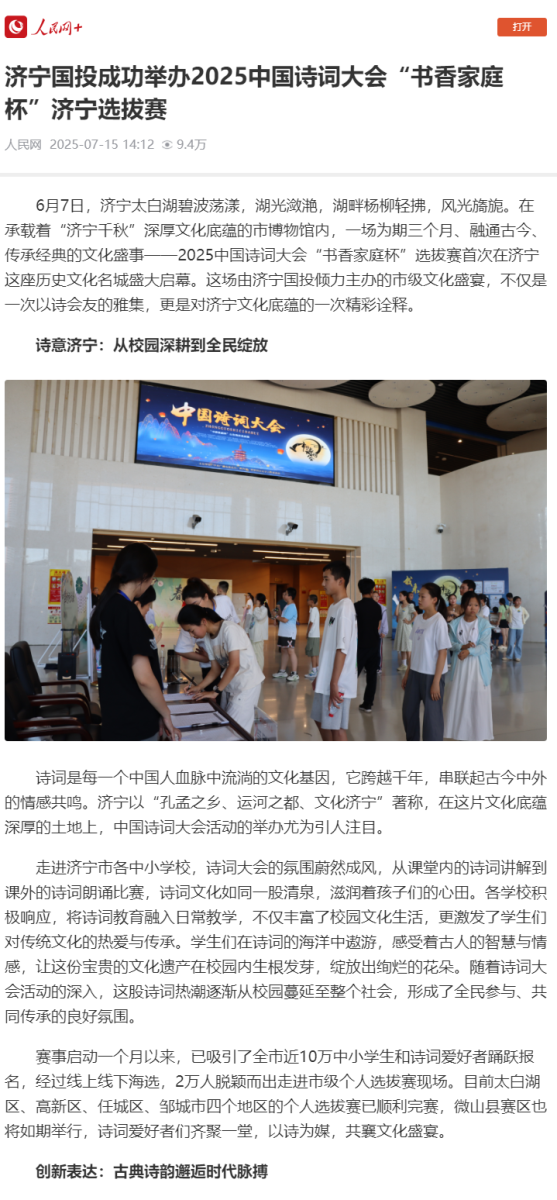 原鏈接:濟寧國投成功舉辦2025中國詩詞大會“書香家庭杯”濟寧選拔賽